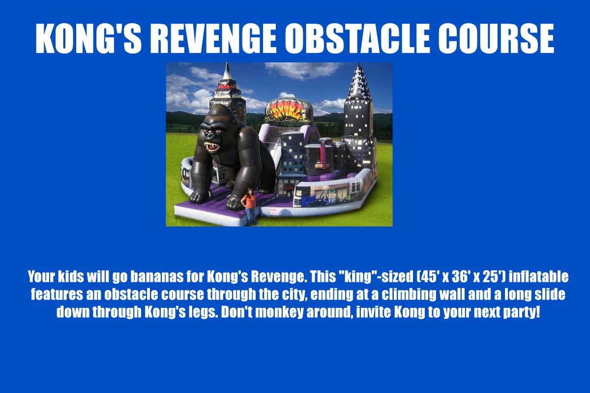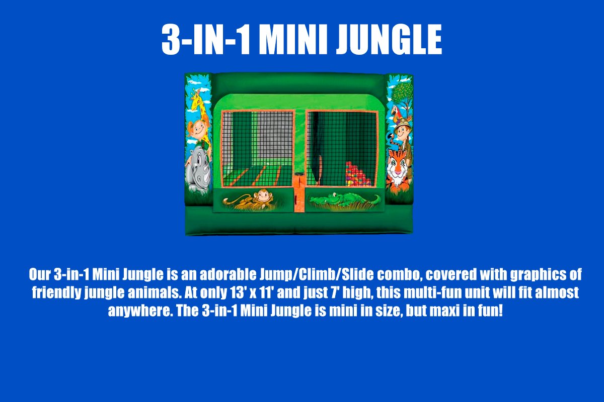 Let us make your next party a bouncing blast! With options for kids, toddlers, and older kids, we have something for everyone. Let the kids bounce, slide, and play all day long!